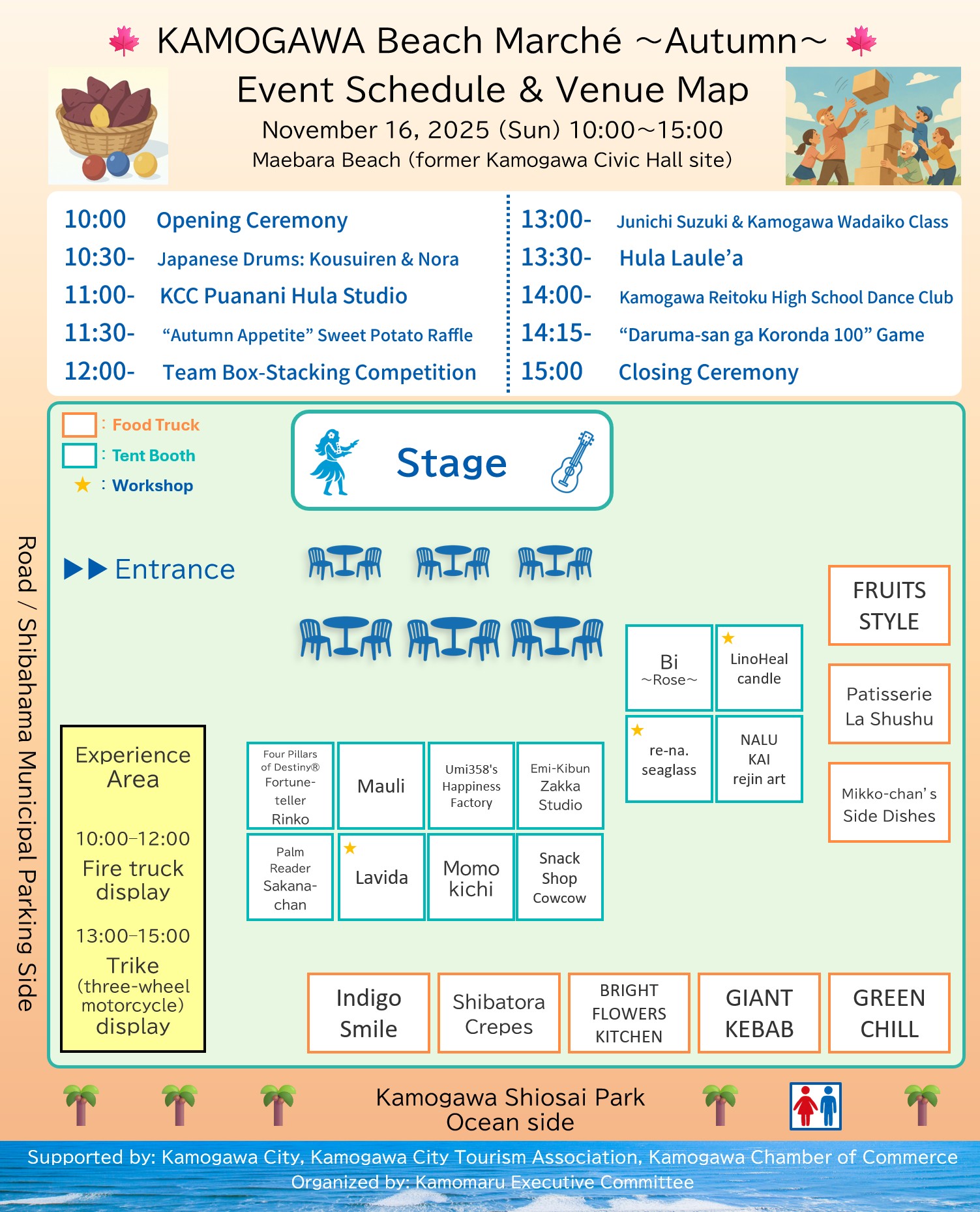 We’ve released the venue map for “KAMOGAWA Beach Marche ~Autumn~” which will be held on Sunday, November 16, 2025 at Maebara Beach in Kamogawa City!